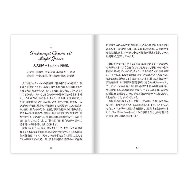 このデッキを通して天使の存在を感じることで、あなたは決してひとりぼっちではないと気付けるでしょう。そして、あなたの持つオーラの色を理解したとき、あなたの人生が本当の意味で癒されはじめます。天使たちと一緒に、人生を変えるリーディングを始めましょう。