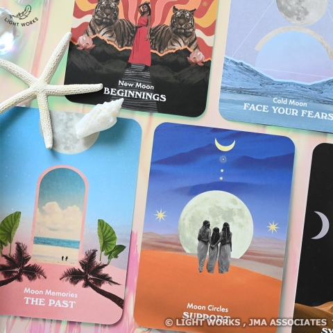 占星術では月は感情を司り、私たちが感じるすべての感情のパイプ役になっています。私たちの感情は思考につながり、思考が言葉や行動につながり、そして人生が展開していきます。このカードを通して、いつも私たちに寄り添い導いてくれる月に問いかけてみてください。きっとあなたが進むべき道を照らしてくれるでしょう。